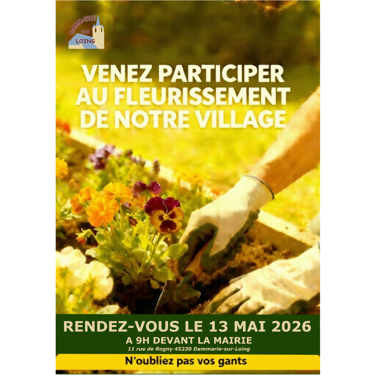Rendez-vous à 9h devant la mairie, 11 rue de Rogny 45230 Dammarie-sur-Loing. N'oubliez pas vos gants !